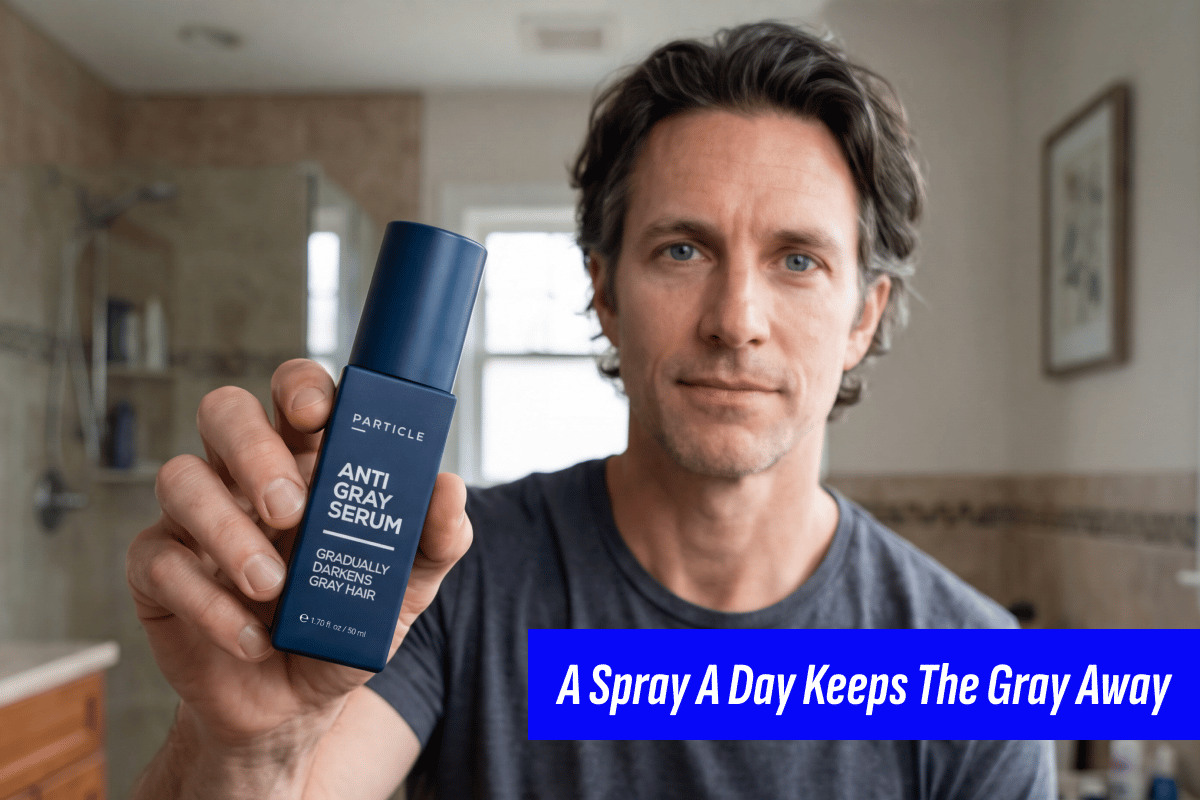 Hair dye fixes gray. It also gives you roots, a smell, and a hairline that looks painted. Particle Anti-Gray Serum works at the root to gradually restore your natural color — hair and beard — no dye, no mess. Thirty-day guarantee. Get 20% off now with the code BH20.