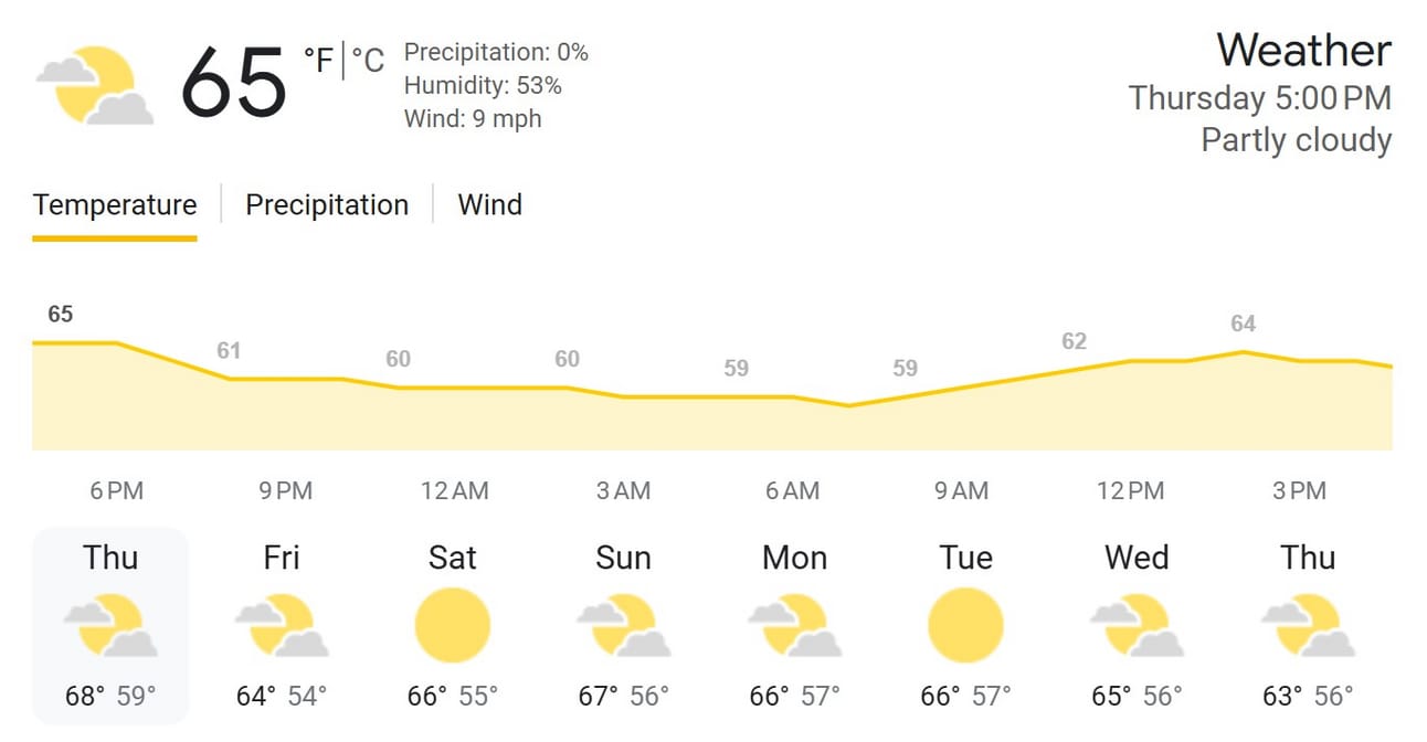 As of Thursday 4/17 | Source: Google Weather